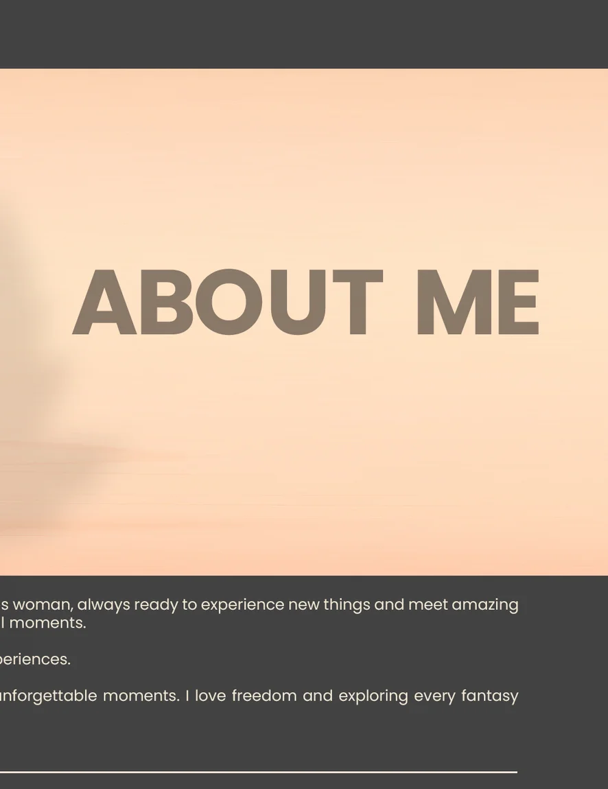 I know how to provoke without rushing, savoring the power of anticipation and carefully crafted desire. I combine sensuality with a strong character, intimacy with mystery, ensuring that every interaction feels exclusive and personal. You don't just see me: you feel the connection, the authority, and the magnetism of someone who knows exactly what she wants and how to get it.